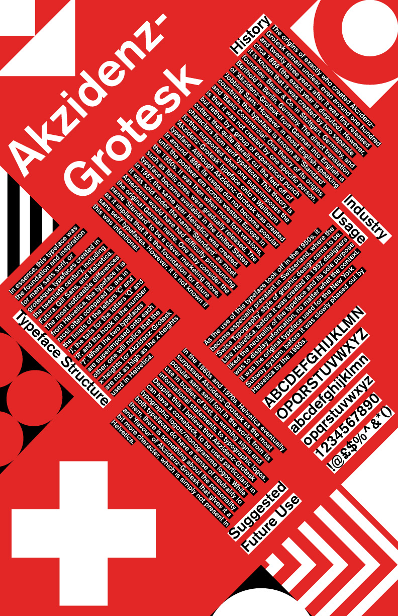 The Brief: To research and write a designed report of 500 words on a typeface of the student's choosing on a tabloid sized canvas (11 x 17 inches/279 x 432 mm- North American equivalent of size A3).