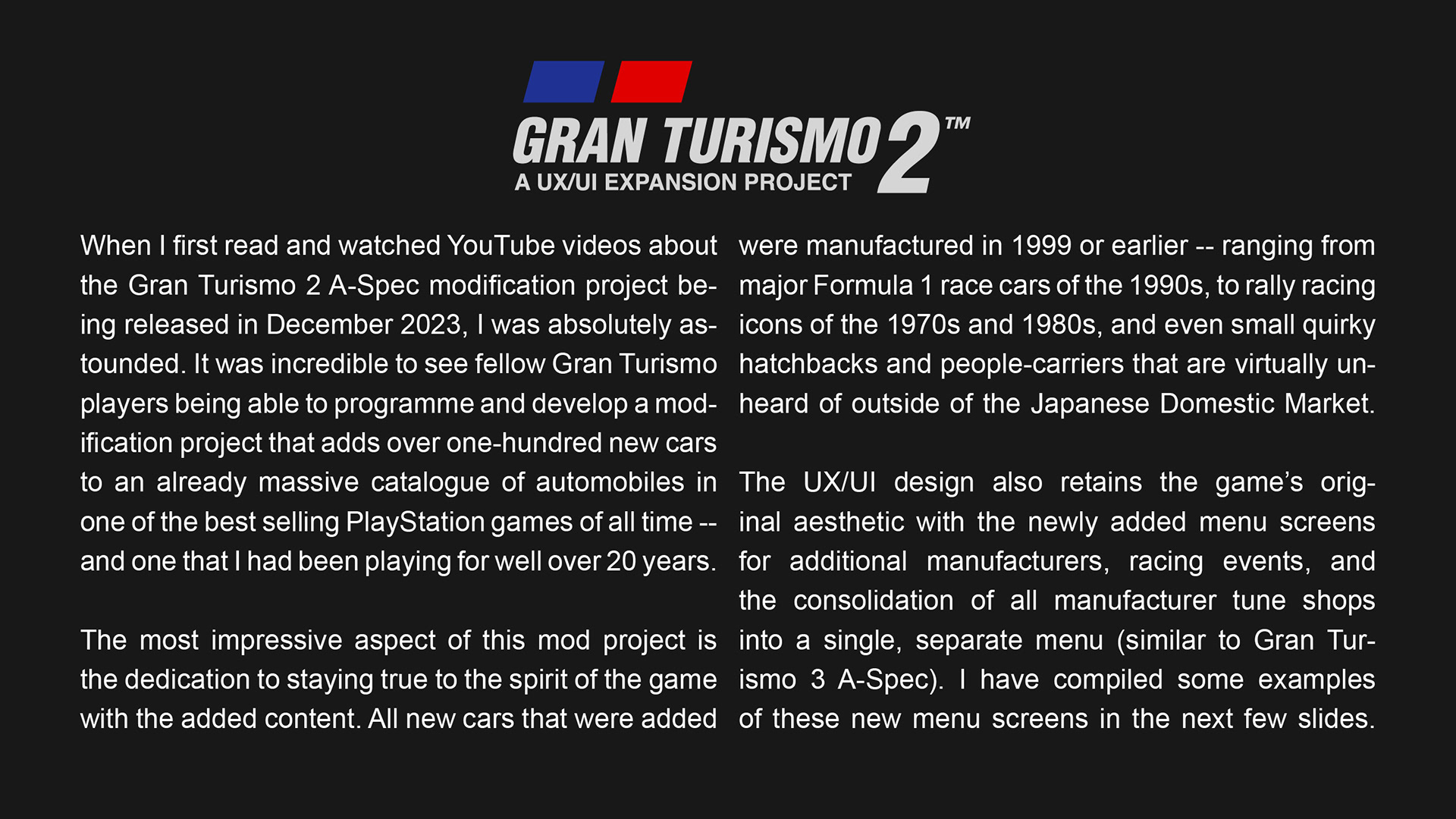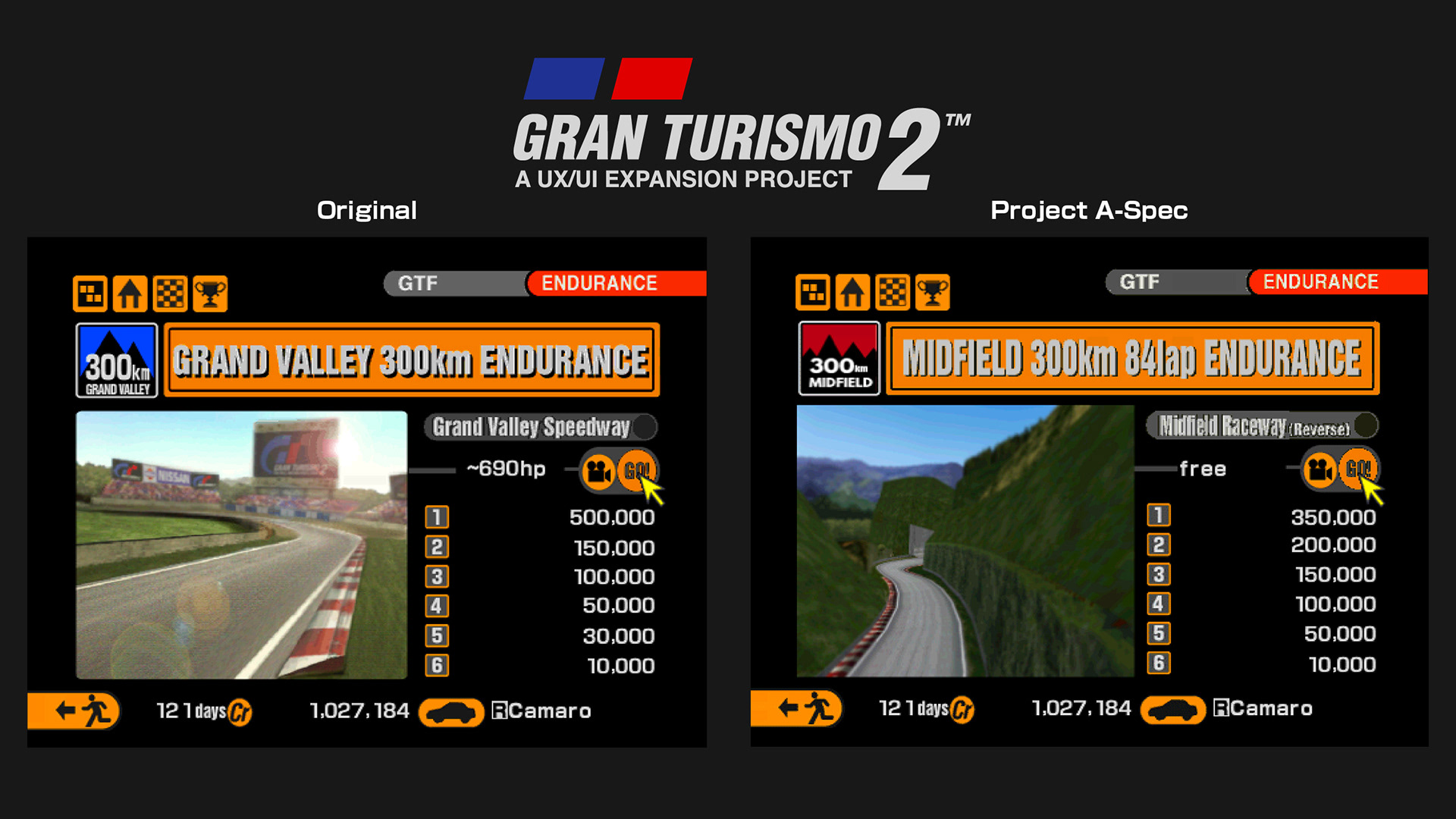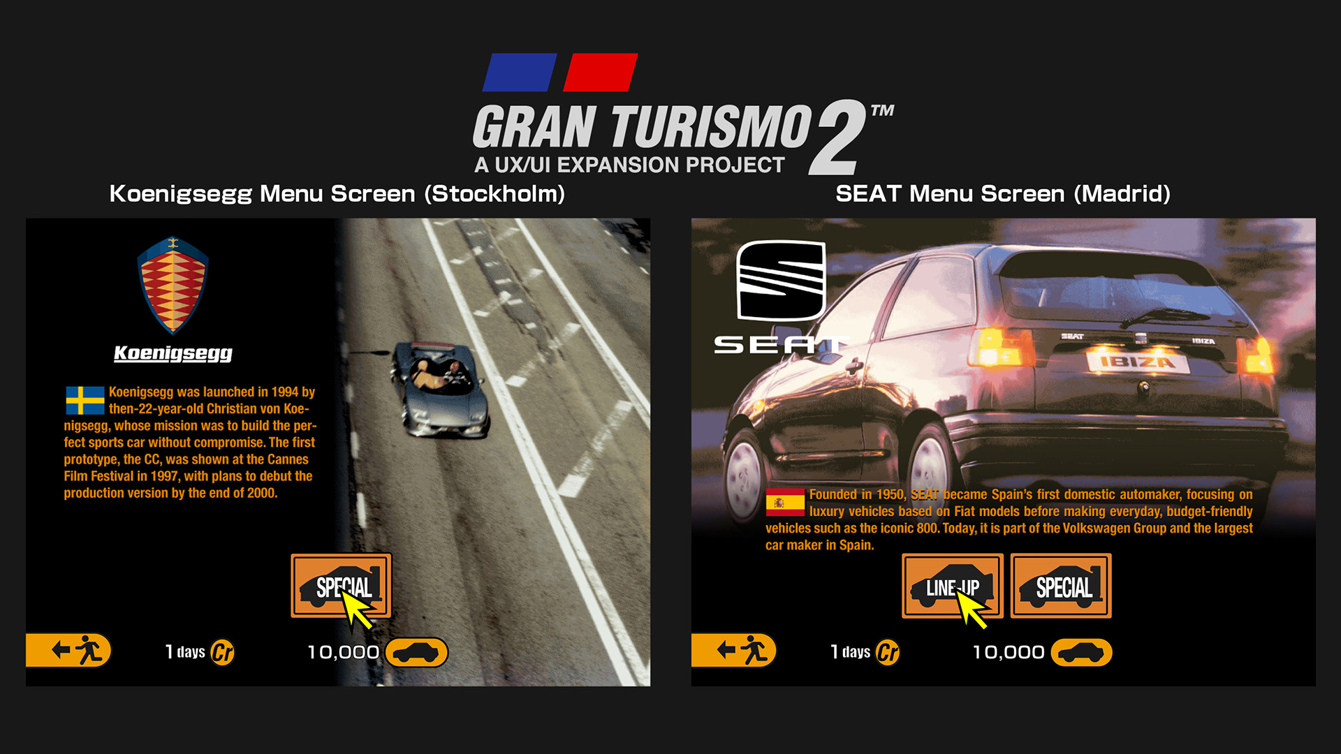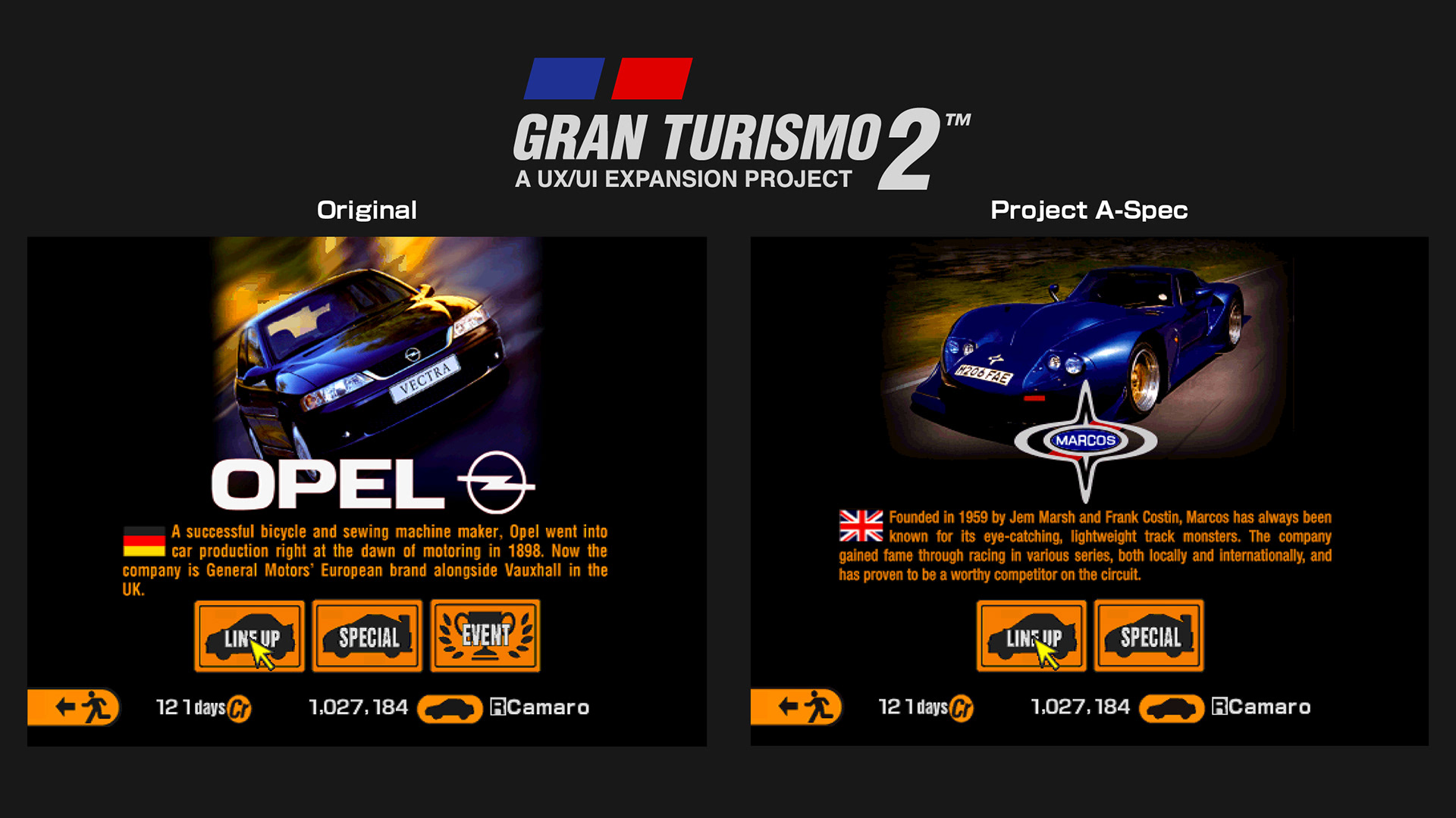 Menu Expansion: Gran Turismo 2 [UX/UI] {WIP}