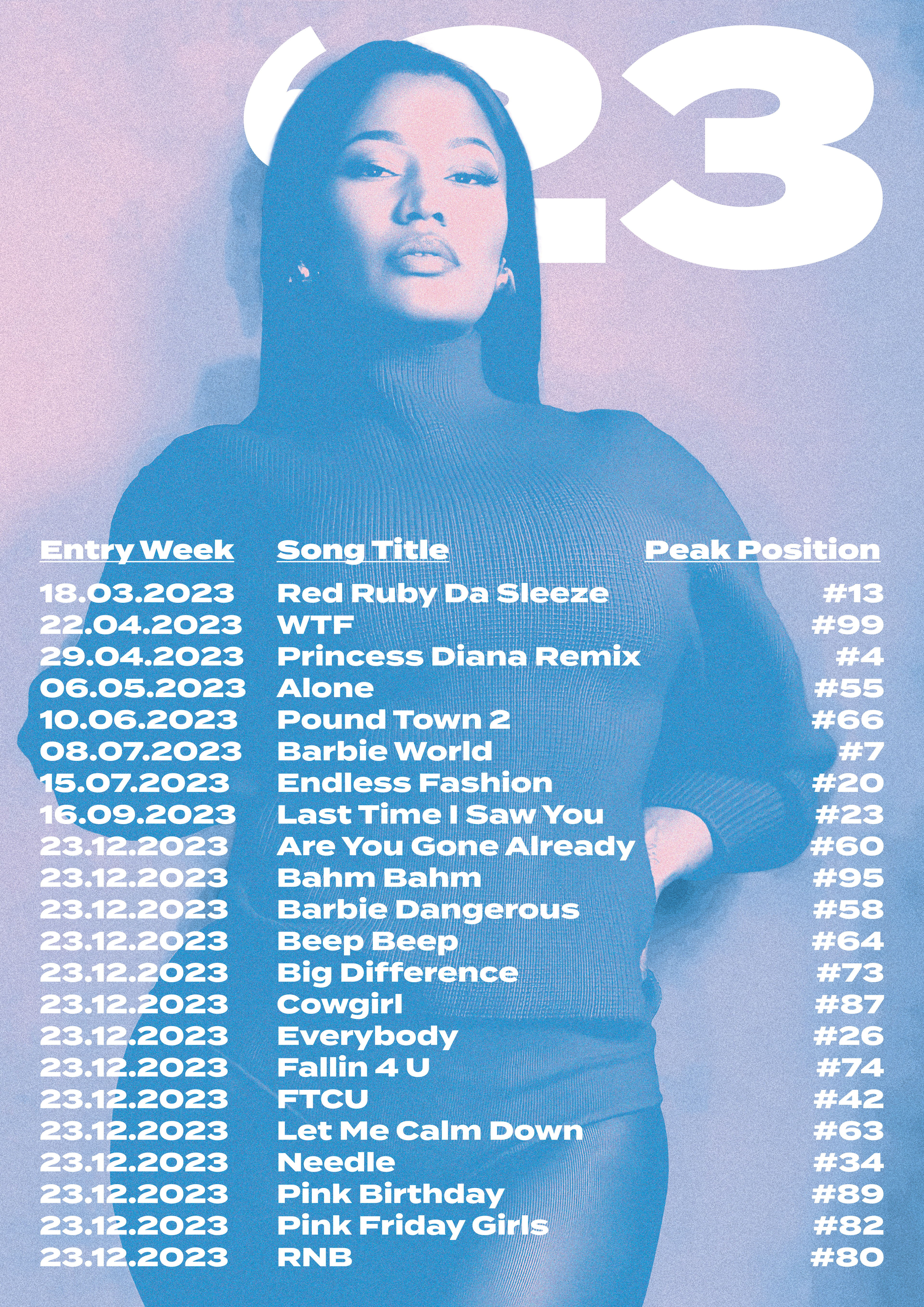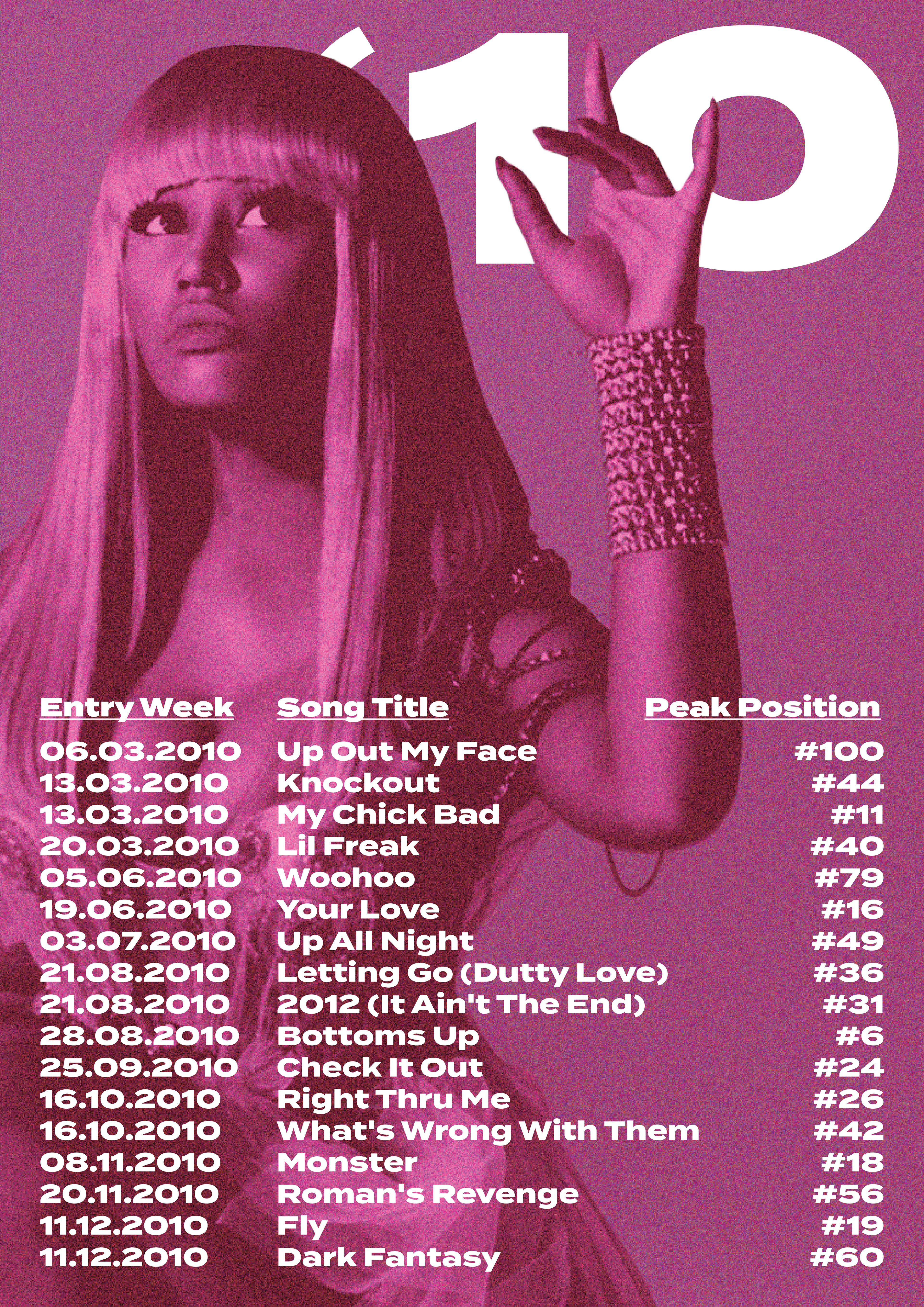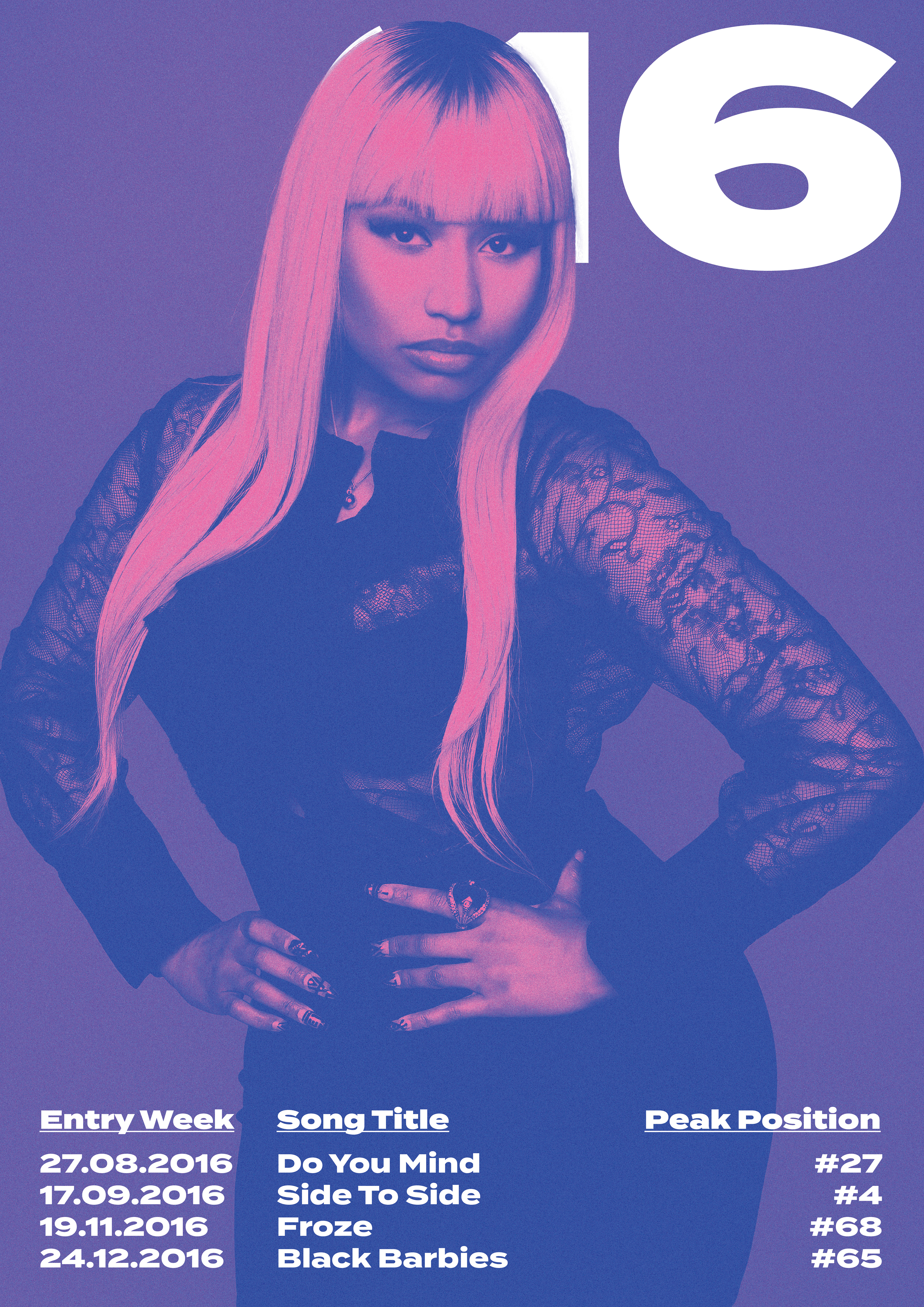 This is a personal project I did to celebrate Nicki Minaj's 5th studio album release by showcasing and highlighting her accomplishments on Billboard over the years.